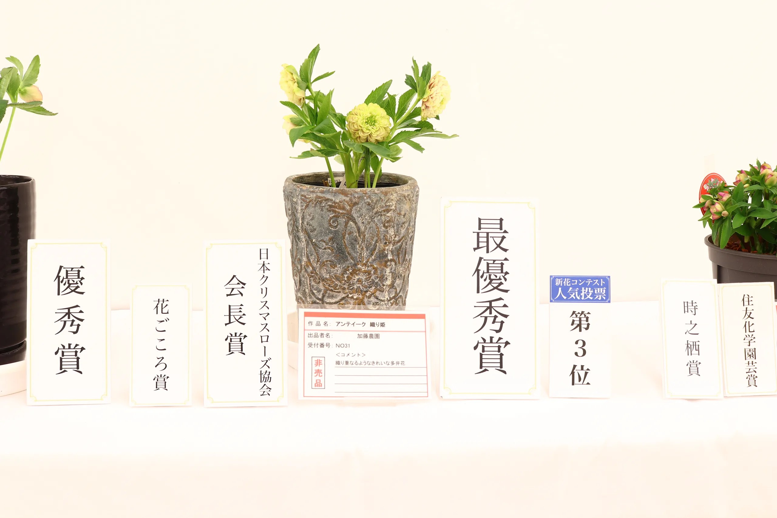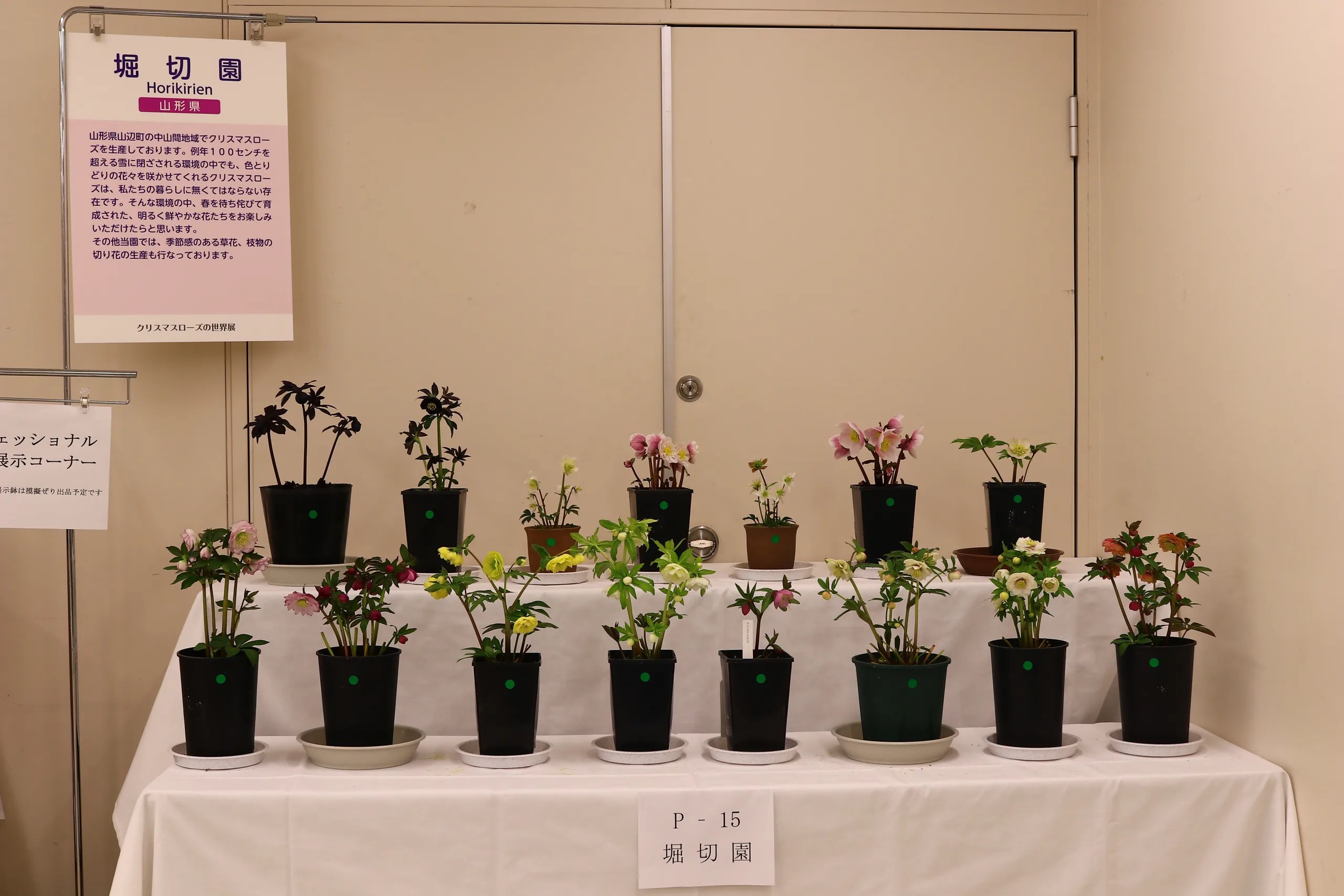 過去の様子(2025) 過去の様子(2025)をご紹介いたしますクリスマスローズの世界展の過去の様子(2025)をご紹介いたします。クリスマスローズの世界展2025では、会場をサンシャインシティ展示ホールAに移して実施されました。大きく変わった点は、すっきりとした動線とわかりやすいレイアウトでした。日本最大級のクリスマスローズイベントこのイベントは、毎年2月の下旬に開催されている日本最大級のクリスマスローズのイベントです。今回で24回目を迎えます。主催はクリスマスローズの世界展実行委員会ですが、実行委員会は主に日本クリスマスローズ協会のメンバーがおり、クリスマスローズのスペシャリストが運営しております。イベントの運営は不慣ですが、クリスマスローズへの愛と情熱は深く熱いものがります。そんなクリスマスローズの世界展ですが、毎年、魅力的なクリスマスローズを展示・販売するイベントです。そこで、どんなイベントを簡単にご紹介いたします。イベントの主なコンテンツは2つあります。ひとつは展示。ふたつ目は物販です。魅力的な展示コーナーまず、展示ですが、4つのコーナー展示があります。新花コンテスト展示、協会会員展示、プロフェッショナル展示、ウエルカム展示です。順にご紹介していきましょう。 「ウエルカム展示」過去の様子(2025)毎年行われるクリスマスローズの世界展は、昨年2025年には、一部をリニューアルして展示しました。ウエルカム展示は「クリスマスローズのある家」というテーマで展示しました。 こちらのブースでは、ヨーロッパのお家をイメージして、お庭にはクリスマスローズの寄せ植えの展示、お家の中には近年生産量が増えているクリスマスローズの切り花を使った展示を行いました。とても多くの方にご覧いただいたブースでした。展示協賛【鉢物協賛】横山園芸(東京都)・長谷川園芸・(茨城県)・野田園芸(東京都)・童仙房ナーセリー&ガーデン(京都府)【切花協賛】JAみなみ信州(長野県)・フラワースピリット(長野県) 「原種展示」過去の様子(2025)主にクリスマスローズの原種を展示していました。クリスマスローズの原種をまるで大きな辞典や図鑑を見るようなイメージで展示。ディスプレイも大変好評でした。 「プロフェッショナル展示」コーナークリスマスローズの生産者による展示コーナーです。各々のナーセリーが新商品の展示をしたり、自慢の生産品を展示したりしています。こちらではその一部をご紹介いたします。 「新花コンテスト展示」新花コンテストはその年に交配された新たなクリスマスローズをコンテスト形式で争います。出品はプロアマ問わず出品されます。そして、コンテストの審査は日本クリスマスローズ協会によって行われます。最優秀賞は、、加藤農園作出の「アンティーク 織り姫」でした。 「日本クリスマスローズ協会会員展示」日本全国のクリスマスローズ協会会員からこの日の為に手塩に育てたクリスマスローズを展示するコーナーです。器に凝ったり、お花を自ら交配したり、とてもこだわりを持って育てられたクリスマスローズたちがてんじされていました。 大人気「クリスマスローズマーケット」クリスマスローズをはじめとする物販コーナーです。クリスマスローズを販売するナーセリーや園芸店や生花店が出展しています。 毎回定員満員御礼「セミナーブース」クリスマスローズの世界展でやはり人気なのが、クリスマスローズにまつわるあれこれを効くことが出来るセミナーブースです。ほとんどのセミナーが入場料のみで参加できる有料コンテンツとなっています。TVや雑誌、Youtubeなどでおなじみの講師陣がクリスマスローズのことについて詳しく解説いたします。また、人気の模擬ゼリやフラワーアレンジメントライブなどさまざまなクリスマスローズにまつわる催しを体験できます。 生産者×園芸家✕園芸店のセミナーで、左から大木ナーサリーさん、園芸家・金子明人さん、渋谷園芸さん YoutubeでおなじみのナンバッチことM&Bフロントの難波さんによる寄せ植えセミナー クリスマスローズ展でしか体験できないクリスマスローズオークション。毎回とんでもない目玉商品が飛び出す人気のコーナー。 過去の様子(2025)では切花にもブームが到来しつつあるクリスマスローズの切り花を使ったデモンストレーションを開催。 まとめ いかがでしたでしょうか?過去の様子(2025)を振りかえってみました。次回のクリスマスローズの世界展も是非お楽しみに! 資料請求やご相談につきましてはお電話でも承っております。お気軽にご相談ください。 事務局お問い合わせ先 クリスマスローズの世界展2026事務局担当 KALIANg Event TEAM106-0032 東京都港区六本木7-8-5 藤和六本木コープⅡ 404 電話 03-6447-0873メール info@crsekai.com サイトマップトップページ|出展募集|過去の様子2025|過去の様子2024